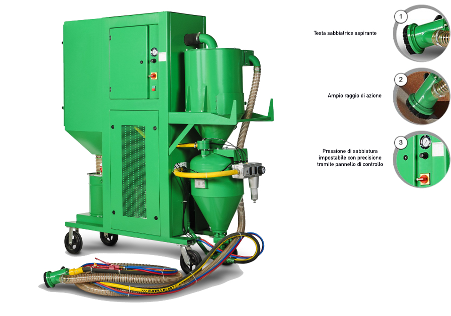 IGM sviluppa e distribuisce anche impianti di aspirazione e recupero per impianti da cantiere degli abrasivi, con confezionamento e selezione dei residui per ridurre al massimo l’impatto ambientale.