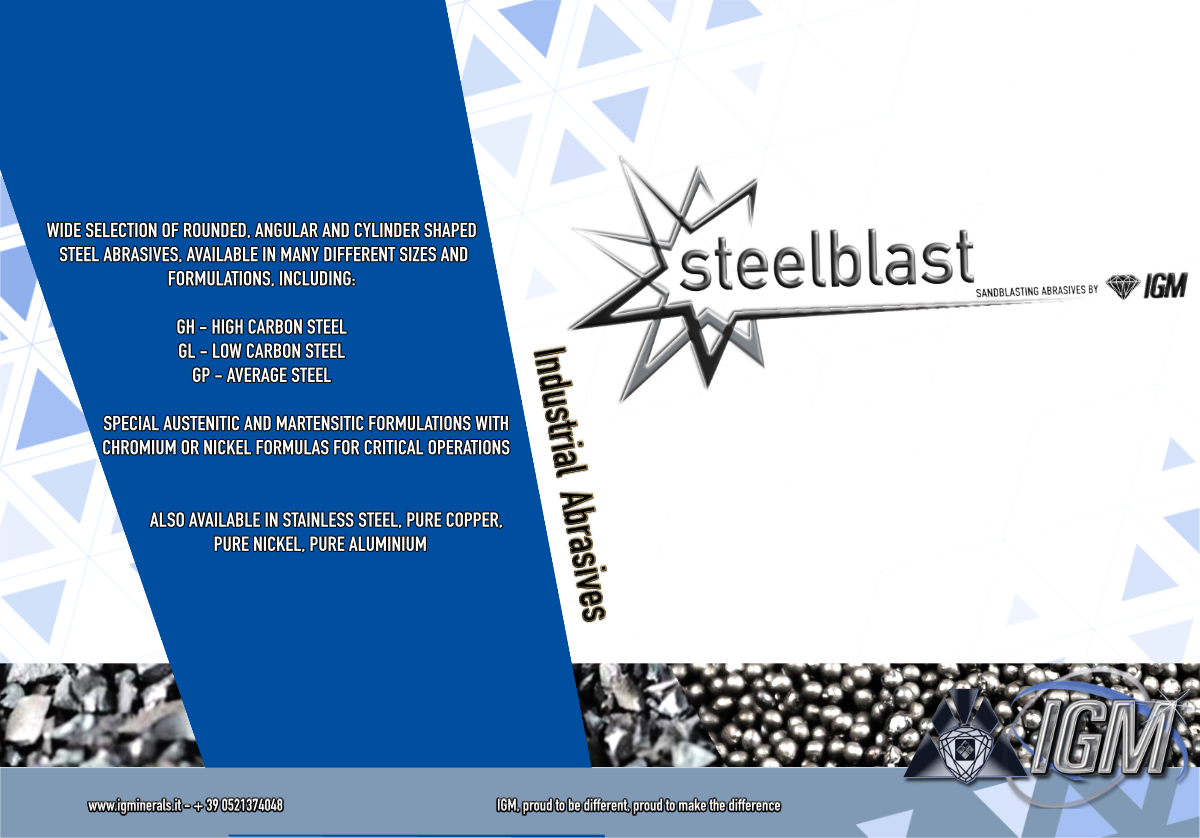 IGM distribuisce una gamma di graniglie metalliche angolose, sferiche e a cilindretti per la sabbiatura e pallinatura industriale e per la segagione dei blocchi di granito.